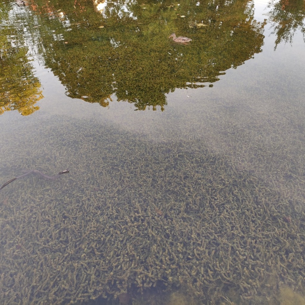 Woda na zdjęciu powyżej jest przezroczysta dzięki obecności wielkopowierzchniowych płatów moczarki, gdyż konkuruje ona z fitoplanktonem o pokarm, więc mimo tego, że środowisko jest żyzne, przezroczystość wody jest bardzo dobra (o funkcjach jakie rośliny wodne pełnią w ekosystemie będzie w kolejnym wpisie).